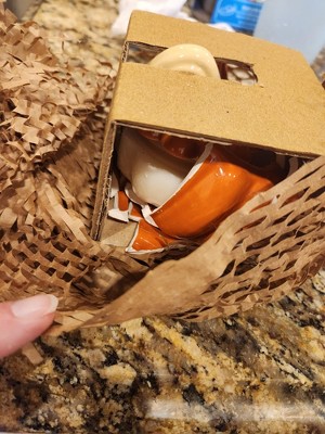 Received through order pickup. Looks like it was damaged and employees tried to fix it with nail polish? I scratched a little off to confirm the paint or nail polish or whatever is on top of the glazed ceramic. Smells good though.