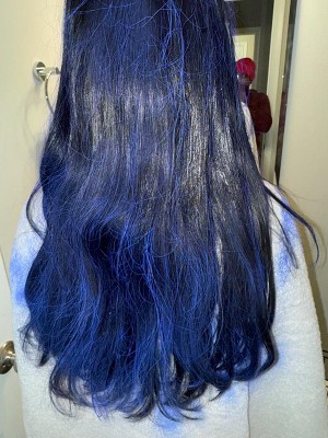 this stuff stained my hair! after 6 washes it’s still blue like chunks of it! i don’t recommend 💔 i mean it worked! my hair was blue but NOT easily to wash off.