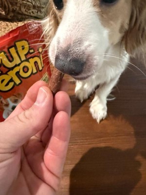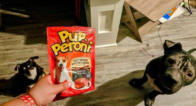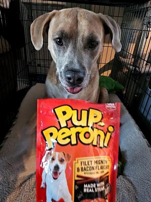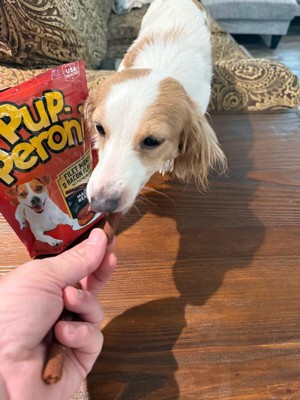 [This review was collected as part of a promotion.] Pup-peroni My boy really loved these. The smell of the bag, the treat, he was super excited about them when he saw the bag. He will quickly chomp a whole one. So, I find they work better tearing into several pieces and using as a training treat. Give it a try! I think your dog will probably love it just as much. If you have a large breed dog just realize that this package will not last really more than a week.