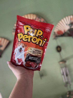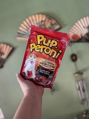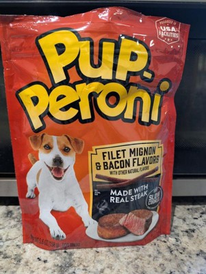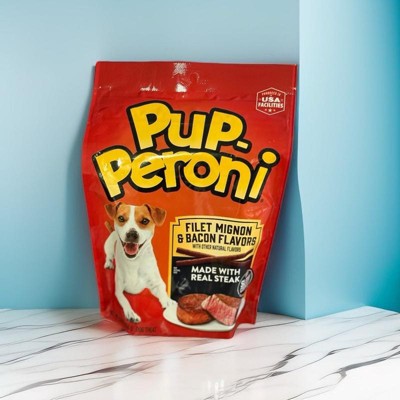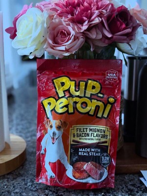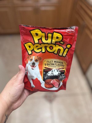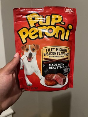 - Contains one (1) 5.6-ounce bag of Pup-Peroni Filet Mignon & Bacon Flavor dog treats
