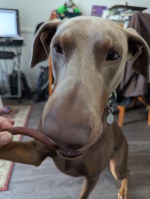 [This review was collected as part of a promotion.] These smell great once you break the seal. Just like steak. And my dog absolutely loves them! I like that the first ingredient is beef. And the sticks are a good size so my big dog can eat just one. I’d recommend.