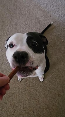 [This review was collected as part of a promotion.] My pup absolutely loves these treats. They smell good and I like that the packaging is a reusable baggie. It’s easy to pull apart to use as multiple treats with one stick.