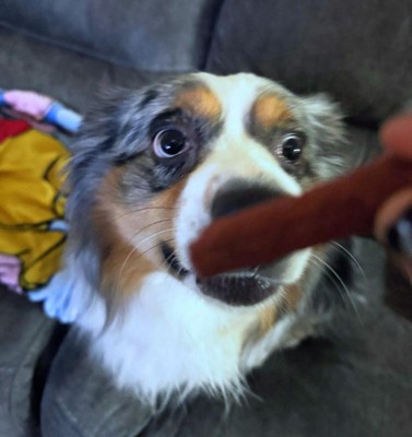 [This review was collected as part of a promotion.] When I opened the package, it immediately got the attention of my girls. I have to say, they look and smell like a brand of beef sticks marketed for humans. 🤣 One fur baby is more picky than the other but they both loved it.