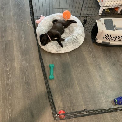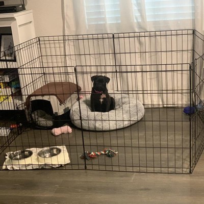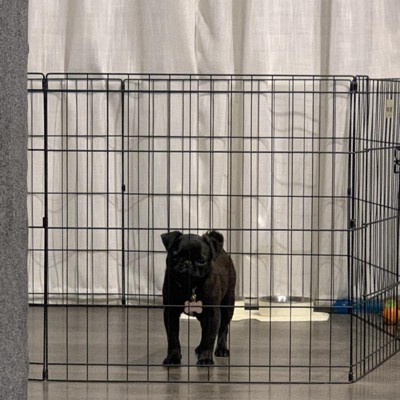 Great for the price! The connection point for the fence is bulky but overall it gets the job done and you hardly have to do any set up. Just unfold and connect the two sides. I use this for my pug puppy and it has helped a lot while we work on her potty training. There’s also plenty of room for my 6 year old to climb in there and play with her. It’s been wonderful for helping localize accidents without her being cooped up.