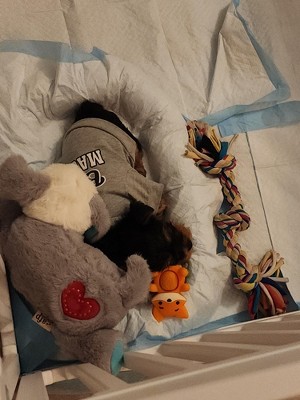 this puppy came home today after getting the all vlear from the vet. I mean wouldn't sleep unless he was help, and I opened this bad boy up, added batteries to the heartbeat, and opened up the self heating pouch and he was asleep like a baby in minutes. THANK YOU!