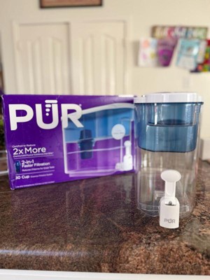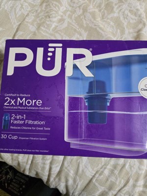- PUR large capacity large water filter dispenser has a 30 cup capacity (8 oz/cup)
