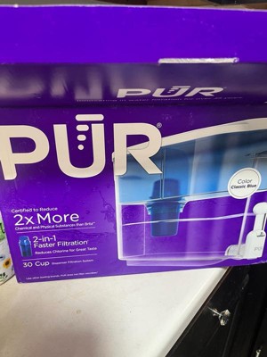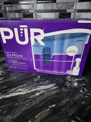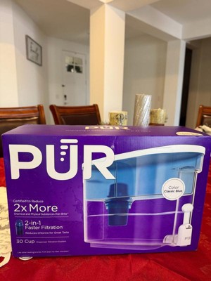 PUR Classic 30-Cup Water Dispenser Filtration System - Blue/White: BPA-Free, Filters Chlorine & Mercury, 40-Day Filter Life