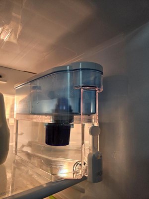 - Filtered water dispenser with slim, space-saving design fits in the fridge or on the counter