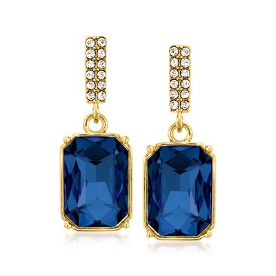 Product Name: Pure Collection by Ross-Simons 1.10 ct. t.w. Emerald-Cut Lab-Grown Sapphire Earrings in 18kt Gold Over Sterling