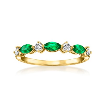 Define your style with stack-and-layer essentials from our Pure Collection. Create the perfect look to show off your personality. Crafted in glowing 18kt gold vermeil, this dainty five-stone ring features 1.20 ct. t.w. lab-grown rubies casting rich red sparkle. Our vermeil jewelry is the highest quality available and is crafted with a thick layer of real 18kt gold over sterling silver, perfect for daily wear and long-lasting shine. 1/8" wide. Lab-grown ruby ring. Stone InformationGem Type 1: Created-RubyStone Cut 1: Good-CutStone Color 1: RedStone Clarity 1: RedStone Shape 1: Emerald-ShapeStone Creation Method 1: SyntheticStone Treatment Method 1: Not-TreatedStone Weight 1: 1.20 CaratsNumber Of Stones 1: 5