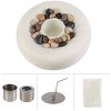 - This table top fire pit comes with a metal fire extinguisher lid to snuff out the flames as well as ceramic wool that acts as a wick and can be reused until it turns black or burn time is reduced