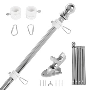 - Materials: Stainless-Steel; Flagpole Kit Includes: (5) 1.3ft Segments, Topper, 2 Clips, Mounting Bracket, Hardware, and Manual