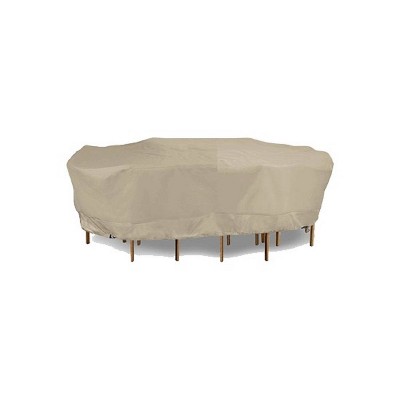 • Protect your patio set from the elements with this 94-inch round outdoor furniture cover, with padded handles that make it easy to take on and off