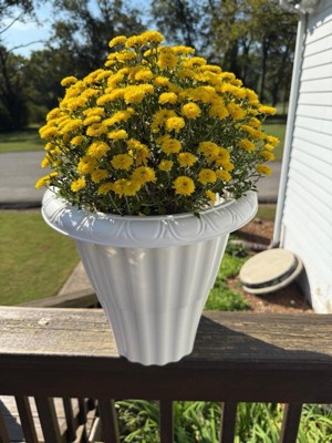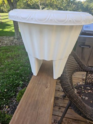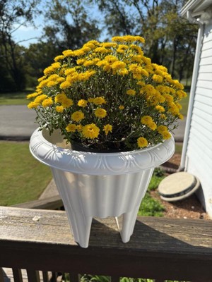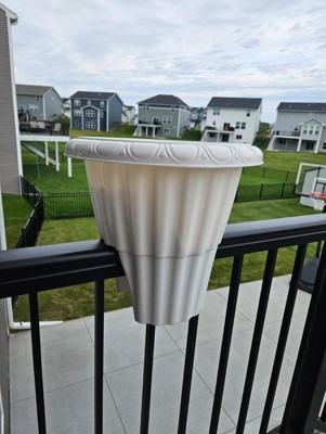 - This round flower pot fits porches, decks, and balconies with wood or metal railings 3 to 3.75-inches wide