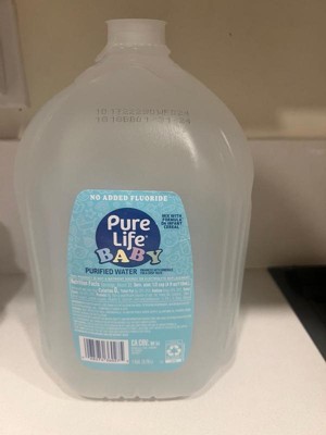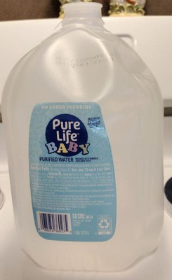 - Contains (1) 1-Gallon Jug of Pure Life Baby Water With No Added Fluoride. Packaging may vary. Not sterile. Use as directed by physician or by labeling directions for use of infant formula