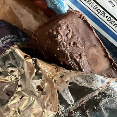 A: Directly from package ingredients (I Googled it...) Ingredients: Protein Blend (Milk Protein Isolate, Whey Protein Isolate, Whey Protein Concentrate), Chocolate Flavor Coating (Maltitol, Fractionated Palm Kernel Oil, Whey Protein Concentrate, Cocoa (processed with Alkali), Calcium Carbonate, Natural Flavors, Soy Lecithin, Sucralose), Hydrolyzed Collagen, Glycerin, Cocoa Powder, Water, Milk Chocolate Drops (Sugar, Whole Milk Powder, Chocolate Liquor, Cocoa Butter, Milk Fat, Soy Lecithin, Natural Vanilla Flavor), Maltitol Syrup, Peanut Flour, Natural Flavors, Vitamin and Mineral Blend (Ascorbic Acid, d-Alpha Tocopherol Acetate, Niacinamide, Zinc Oxide, Biotin, Copper Gluconate, d-Calcium Pantothenate, Potassium Iodide, Vitamin A Palmitate, Tricalcium Phosphate, Pyridoxine Hydrochloride, Thiamin Mononitrate, Riboflavin, Folic Acid, Cyanocobalamin), Sucralose, Almond Butter, Soy Lecithin.