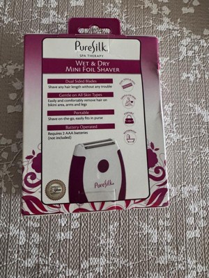 [This review was collected as part of a promotion.] The Pure Silk Wet and Dry Mini Foil Shaver is a compact, battery-operated grooming device designed for both wet and dry shaving. It can be used for various body areas, including arms, legs, and the bikini line. It has dual clipper blades which can be used for different hair lengths effectively. It’s compact size makes it travel-friendly. It operates on 2 AAA batteries which are not included with the shaver. I personaly used it on my arms and legs and it was so gentle on my skin. It does not give me those razor bumps. It comes with a cleaning brush and protective cover.It easily fits in my purse and makes it easy to carry with me on my trips.