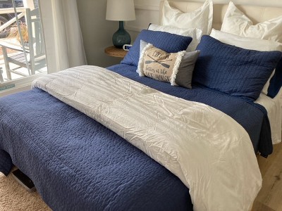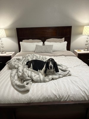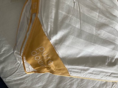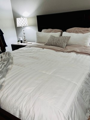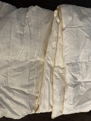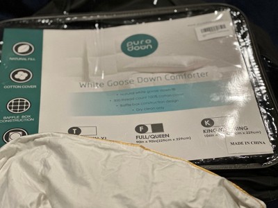 A: Thank you for your question! The fill of this comforter is high-quality 90% goose feathers and 10% goose down, offering great loft and support.