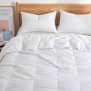 Enjoy a refreshing and comfortable night's sleep without night sweats with our Lightweight Breathable White Down Comforter. Made with a unique and special mesh fabric, our comforter releases excess heat and adjusts your body temperature, ensuring a comfortable sleep all night long. This versatile comforter can also be used as an oversized blanket, making it perfect for hot summers or warm climates. The classic sewn-through construction helps to evenly distribute the premium white down fill, featuring 600 fill power, making it lightweight and fluffy for a peaceful sleep experience. Use it as a cozy duvet insert with its four convenient corner loops, or as a stand-alone comforter. Elevate your sleeping experience with our premium Breathable White Down Comforter today.