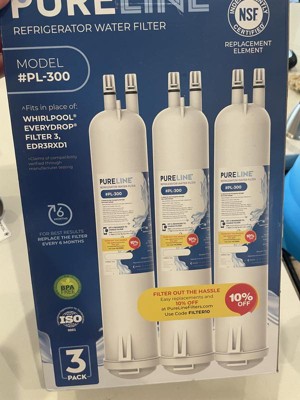 This premium replacement refrigerator water filter by Pureline is the perfect alternative to the costly branded EDR3RXD1 fridge filters. Utilizing an advanced highly activated coconut carbon block, these filters are independently certified for NSF-372 and NSF-42 and will effectively reduce a wide range of impurities including chlorine, odors, bad taste, and particles. This convenient 3-pack will provide 18 months of fresh water supply.