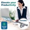 - Experience comfort and increased productivity with this computer stand, offering seven adjustable height levels for personalized ergonomic support and viewing flexibility. This laptop holder's moving clasp folding technology allows quick and secure folding, making it effortless to adjust to the perfect height for typing or viewing.