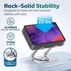 - Take your device's performance to new heights with this tablet holder's innovative design. Crafted from strong aluminum alloy, this stand provides solid stability and can support devices weighing up to 22 lbs. Additionally, the tablet holder stand's open-air design promotes increased air flow, effectively dissipating heat and preventing overheating. Enjoy uninterrupted usage and optimal performance, even during extended periods of use.
