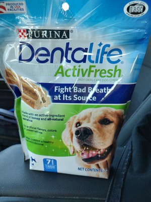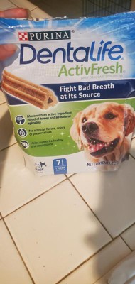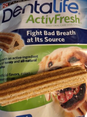 [This review was collected as part of a promotion.] My dog loved Purina dentaLife Activfresh oral chews for dogs! I gave her one and she ate it and promptly asked for another! And I love it as well since it makes her breath smell better and helps to clean her teeth without putting her through the stress of brushing her teeth!