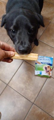 [This review was collected as part of a promotion.] My large dog Beamer loved this chew oral care supplement. She did not flinch she took a bite ran over to her bed and enjoyed it within 5 minutes. She can be quite picky so I know she could smell it immediately and that it was something she wanted!