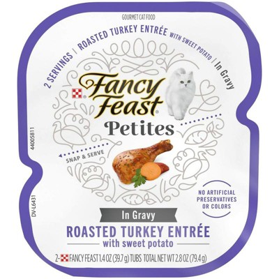 Thanks for sharing your felines both fancy Purina Fancy Feast Petites Roasted Turkey Entree w/ Sweet Potato in Gravy Wet Cat Food. We appreciate your love. - The Fancy Feast Team.