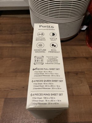 [This review was collected as part of a promotion.] This is my first time I am getting Purity Home 300TC Percale Bamboo Cotton Sheet Set, Full, White. They are scratchy out of bag, but become softer after first wash. They fit the mattress good and fit on just fine