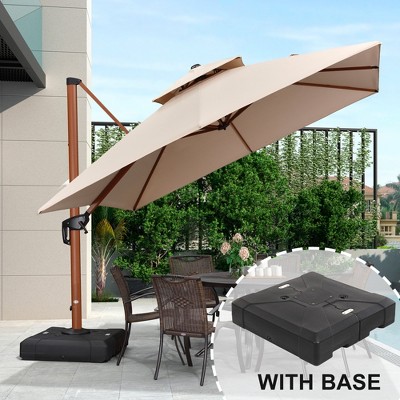 PURPLE LEAF 10ft Outdoor Patio Umbrella Offset Cantilever with Base 360 Degree Rotation Beige Round Market Umbrella for Deck Pool and Garden