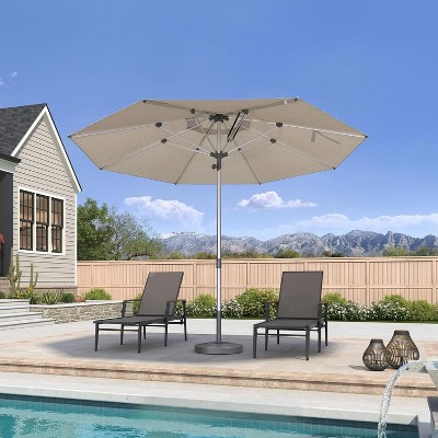 This outdoor umbrella is made with Sunbrella material, which is a professional-grade outdoor fabric known for its durability and waterproof performance. It effectively blocks sunlight and rain, providing you with a comfortable outdoor shade space. Additionally, it has UV protection to safeguard your skin from sun damage. The umbrella also features a unique handle design for easy and quick opening and closing. It offers 6 adjustable heights and angles, as well as 360-degree rotation, allowing you to adjust the umbrella's position and angle as needed. Whether in the garden, on the patio, or at the beach, this outdoor umbrella will provide you with ultimate comfort and convenience.
