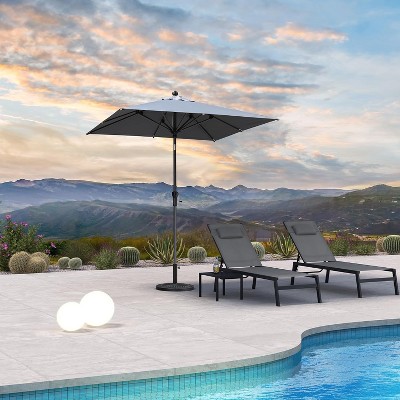 Multi-Function Adjustment: This PURPLE LEAF inexpensive luxury patio umbrella can be easily rotated horizontally 360° with the foot pedal design. The aluminum handle and 5 height adjustable tilt operating system can change the angle of the canopy to provide better sun coverage.