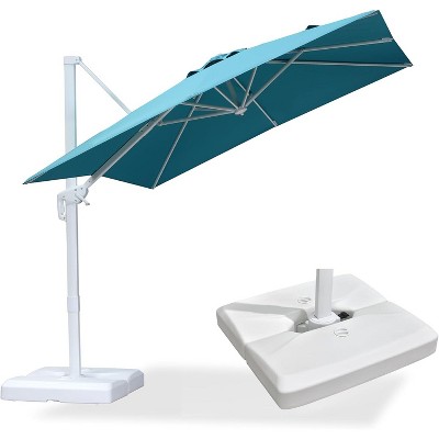 Enjoy your outdoor activities without worrying about the weather with the PURPLE LEAF Suspension Bias Umbrella. This outdoor patio umbrella features a sturdy aluminum frame with 8 heavy-duty reinforcing ribs for stronger support. And the anti-oxidation spray paint makes the umbrella last longer, helping to ensure that the umbrella remains stable in all conditions. Simple tilt operation and hand crank lift make it easy to adjust as needed. Keep your eyes and skin healthy with this waterproof and UV protection umbrella. Weighted base is included, it will be delivered with an umbrella, umbrella base.