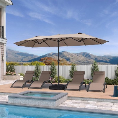 Multi-Function Adjustment: This PURPLE LEAF inexpensive luxury patio umbrella can be easily rotated horizontally 360° with the foot pedal design. The aluminum handle and 5 height adjustable tilt operating system can change the angle of the canopy to provide better sun coverage.