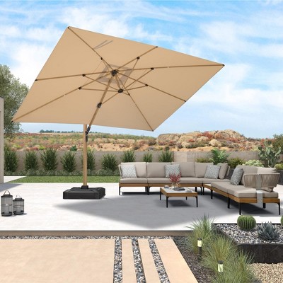 PURPLE LEAF Patio Large Cantilever Umbrella Outdoor Wood Grain Pattern Umbrella Pole Offset Umbrella Heavy Duty Sun Umbrellas for Garden Deck Pool