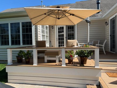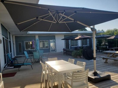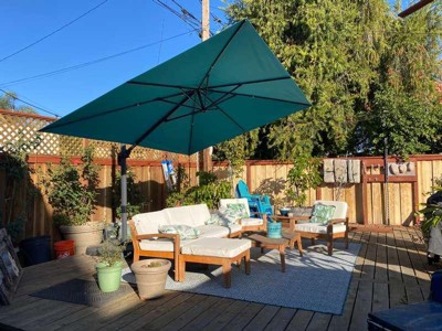 We live in Arizona where the summer sun is unbearable, even when in the pool. After looking into getting a shade sail installed, we opted to get one of these umbrellas instead and it is perfect because it’s attractive, well built, and easy to operate. I especially like all the different ways it can be adjusted. We chose a base with wheels, so in addition to adjusting the umbrella as the sun moves, we can also easily roll it to be used in any area of our yard. Much more flexible and more economical than a shade sail.