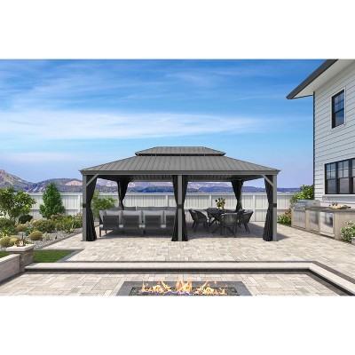 PURPLE LEAF 6' x 8' Hardtop Grill Gazebo for Patio Permanent Aluminum Barbeque Shelter Gazebo with Ceiling Hook and Shelves Grey Outdoor BBQ Gazebo