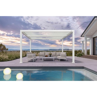 PURPLE LEAF Louvered Pergola 10' x 14' Outdoor Aluminum Pergola with White Adjustable Rainproof Roof Grey Frame Hardtop Gazebo for Patio Deck Garden