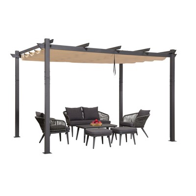 [ Retractable Pergola Canopy ] Adjustable canopy allows you to control sun exposure, while locking system ensure canopy stays in place. [ Premium Material ] Metal aluminum pergola is built to last for many years of enjoyment. The reinforced aluminum, rust-resistant frame will support the stability and durability for every season. [ Upgraded Canopy Fabric ] The pergola shade cover is more durable, UV resistant, fade resistant, while reducing temperatures underneath by up to 30% protection for outdoor furniture. [ Usage Scenario ] Whether you decide to position it on a patio, grass, or by a pool, hardware is included to secure this outdoor pergola safely into any ground.. [ Vintage Classic Pergola ] Gazebo has the power to create a modern look while also offering a warm and intimate feeling. Make all your outdoor occasions feel like a vacation getaway. [ Designed for Easy Assembly ] pergola gazebo simply follow the instruction manual and within a few hours enjoy the upgraded comfort of your backyard.