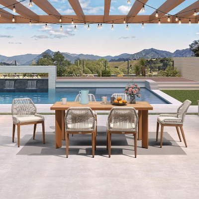 PURPLE LEAF Patio Dining Set All-Weather Wicker 7 Pcs Aluminium Outdoor Table and Chairs Set for Backyard Decor Kitchen Modern Furniture Set