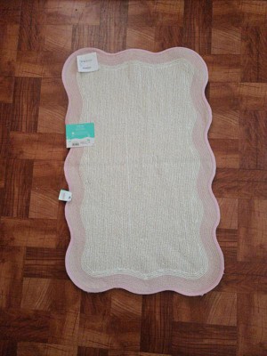 Infuse your child's bathroom decor with the seaside charm of this Purple Wave Bath Rug from Pillowfort™. The rectangular bath rug showcases a white tufted surface and a wavy purple border trim for a striking look. Made from 100% cotton and machine washable for easy cleaning, this rug is a playful accent they'll love adding to the bathroom floor.