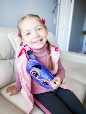 Light up your look with the Purse Pets Savannah Spotlight belt bag! This fabulous and functional interactive Purse Pets girls purse is packed with stylish features. She responds to your touch, has multicolor light-up cheetah spots and over 30 exciting sounds and light effects! Savannah Spotlight features beautiful details including pebbled faux leather accents, amped up expressive eyes, a metal zipper, and an adjustable printed Purse Pets strap to wear your way. When you’re out and on-the-glow, she makes sassy sounds as she interacts with you and her spots continuously light up in a rainbow waterfall effect. Tap her head to speed up the color change or hold and release to choose a solid color that matches your look! In Rainbow Rave, discover Savannah Spotlight’s beats. With five songs, this trendy cheetah has more music than any other Purse Pets! As she plays music, her colored lights animate – touch her head to change songs and hold her head to add your own sounds for the ultimate dance party! It’s so much fun! Want to know your style mood? In Disco Destiny, Savannah Spotlight predicts it with cute sounds and more light effects! Hold her head and release to reveal her mood prediction: orange and yellow lights for playful, white for dreamy, purple and pink for glam and so much more! With Savannah Spotlight, rave meets runway! Adjust her strap and wear Savannah Spotlight as a cross body bag, over the shoulder or around the waist. Customize your belt bag with a Luxey Charms character (sold separately) for the ultimate Purse Pets mashup! Measuring approximately 3.5 in. (H) x 10 in. (W) x 2.4 (D), the Savannah Spotlight kids purse has room inside for your favorite essentials. Includes 3 AAA Duracell batteries. Purse Pets interactive toys for kids are great birthday gifts, Christmas gifts, stocking stuffers or gifts for 5 year old girls and up for any occasion. Make a showstopping statement anywhere you go with the Purse Pets Savannah Spotlight belt bag! Includes: 1 Purse Pets Belt Bag, 1 Instruction Sheet