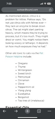 This collection contains oils that are known to be toxic to cats. This is definitely NOT pet friendly. Please beware.