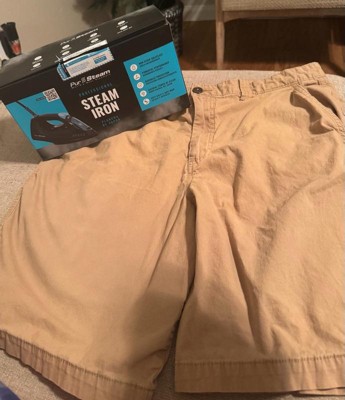 [This review was collected as part of a promotion.] The PurSteam 1200W Professional Steam Iron heats up within seconds. It has a burst spray feature and a non stick soleplate. The iron has an auto shut off feature, which is really helpful. I ironed one side of the shorts to show how quickly it gets the wrinkles out compared to the other side. I do not have an ironing board so I was curious to see if it would work well if I tried to iron the pair of shorts on a piece of furniture and it was fine. I used the cotton setting since the shorts are 99% cotton. It does have different settings for different material. I also like that the soleplate doesn’t go all the way to the bottom of the iron so when you set it down, you don’t risk burning whatever you set it on. This is a really great iron and the steam feature will definitely come in handy. I just got those shorts out of the dryer so I felt like a quick pass with the iron would be sufficient.