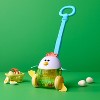 This Push & Walk Popping Chick from Gigglescape™ is ready for your little one's pretend indoor adventures. Made from plastic, this chick rolls as they push it along, entertaining them with a fun popping sound and flapping wings and feet. They can even watch the balls inside pop around the transparent tummy. Recommended for ages two and up, it's great for helping develop their gross motor skills and also promotes movement and experimentation.
