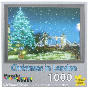 - BEAUTIFUL ART: Completed puzzle measures 27 x 20 inches and depicts a festive holiday scene of London at Christmas time. Part of the Puzzle Works Christmas Series.