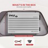 The Pyle PLMRA200 2-Channel Marine Amplifier delivers robust audio performance with its 400W maximum power output. This waterproof amplifier is designed for marine environments, featuring an anti-corrosion coated circuit board for enhanced durability. It supports multiple audio inputs, including RCA and AUX, providing versatility for various audio setups. The included remote control allows for convenient operation. Upgrade your marine audio system with the Pyle PLMRA200 and enjoy high-quality sound on the water.