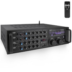 Elevate your karaoke experience with the Pyle PMXAKB2000 Bluetooth Karaoke Mixer Amplifier. This powerful 2000-watt amplifier (1000W + 1000W at 4 Ohms) features Bluetooth connectivity, allowing you to stream your favorite tunes directly from any device, including smartphones and tablets. With two microphone inputs and multiple RCA audio/video connections, mixing has never been easier. The built-in digital LCD provides a user-friendly interface, making adjustments simple. Enjoy MP3 playback from USB and SD card readers, while the microphone talk-over function ensures smooth transitions for announcements. Whether for professional events or home entertainment, the PMXAKB2000 is designed to deliver exceptional sound quality and versatility.