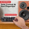 Experience powerful sound with the Pyle 200W 2.1 CH Compact Bluetooth Stereo Power Amplifier. This versatile amplifier features Bluetooth 5.0 for seamless wireless audio streaming from your favorite devices, including smartphones, tablets, and laptops. With a peak power output of 200W, it delivers an immersive listening experience, enhanced by dedicated subwoofer output for deep bass. The compact design makes it easy to fit in any space, while the front panel rotary controls provide intuitive operation. Connect external devices effortlessly using the RCA audio input, and customize your audio with the built-in bass and treble controls. Whether you're enjoying a casual evening or hosting a party, this amplifier is your go-to solution for high-quality sound.